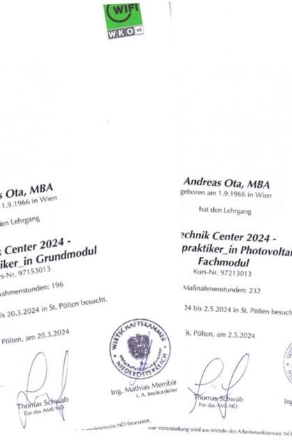 2012 absolvierte ich die Energieberater Ausbildung und berate seither Unternehmen und Privatpersonen. Im Mai 2024 habe ich eine Weiterbildung zum Elektropraktiker (Solarteur) erfolgreich abgeschlossen.